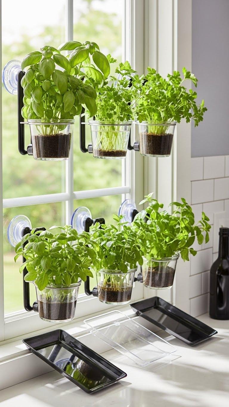 With a few sturdy suction hooks and shallow pots, you can turn any sunny window into a tidy herb station that saves counter space and keeps fresh flavors at your fingertips.