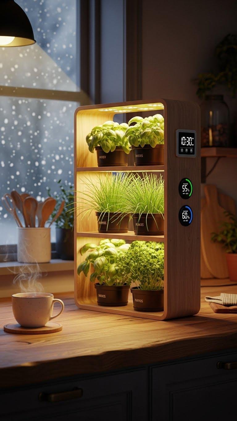 Monitor soil moisture and Humidity control to prevent mold. It’s a low-effort system that lets you harvest fresh herbs daily and keep cooking free.