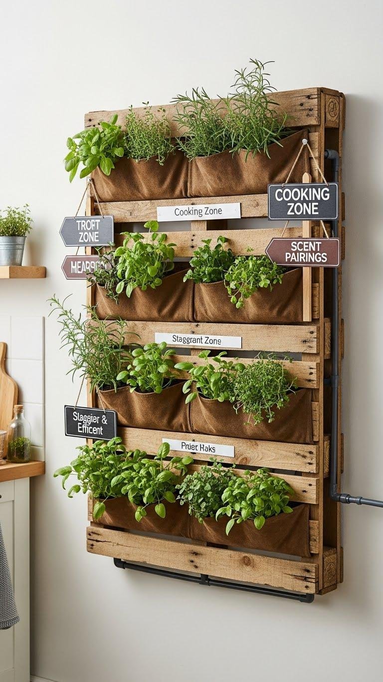 If you’re tight on floor space but still want a lush, kitchen-ready herb garden, a pallet vertical herb wall turns an old wooden pallet into an eye-catching, space-saving planter that’s both rustic and modern.