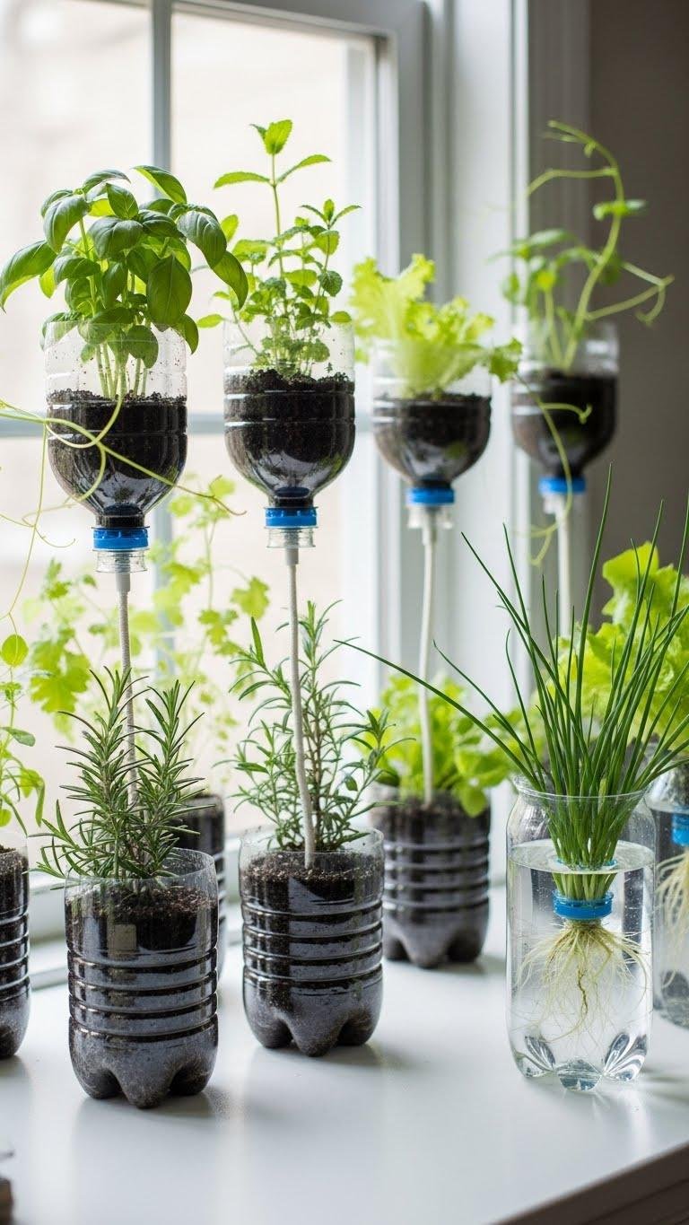 Turn empty plastic bottles into smart, low-effort self-watering planters that keep your herbs happy and your windowsill tidy. You’ll cut, invert and thread a wick to make upcycled wickpots that feed roots slowly, or try simple bottle hydroponics for a soil-free option. They’re lightweight, portable, budget-friendly, and let you reclaim space while enjoying fresh greens with minimal upkeep.