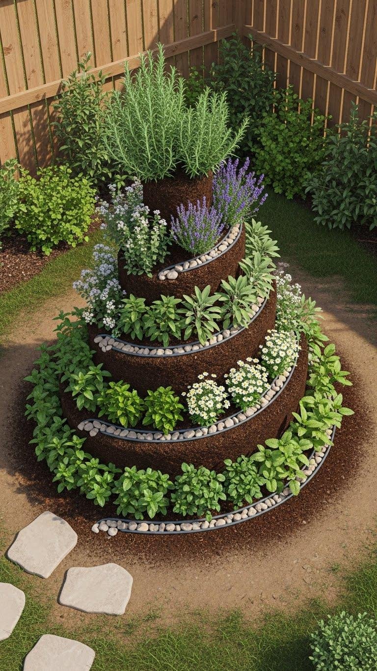 You can shape a compact micro climate, layering drought‑tolerant herbs at the top and moisture‑lovers below.