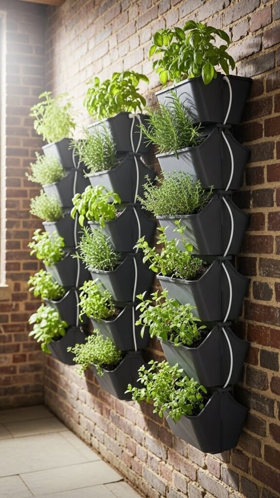 Freestanding vertical pocket planters are a space-smart way to stack dozens of herbs without drilling into walls — they stand on their own, slot into corners, or act as a living room divider.