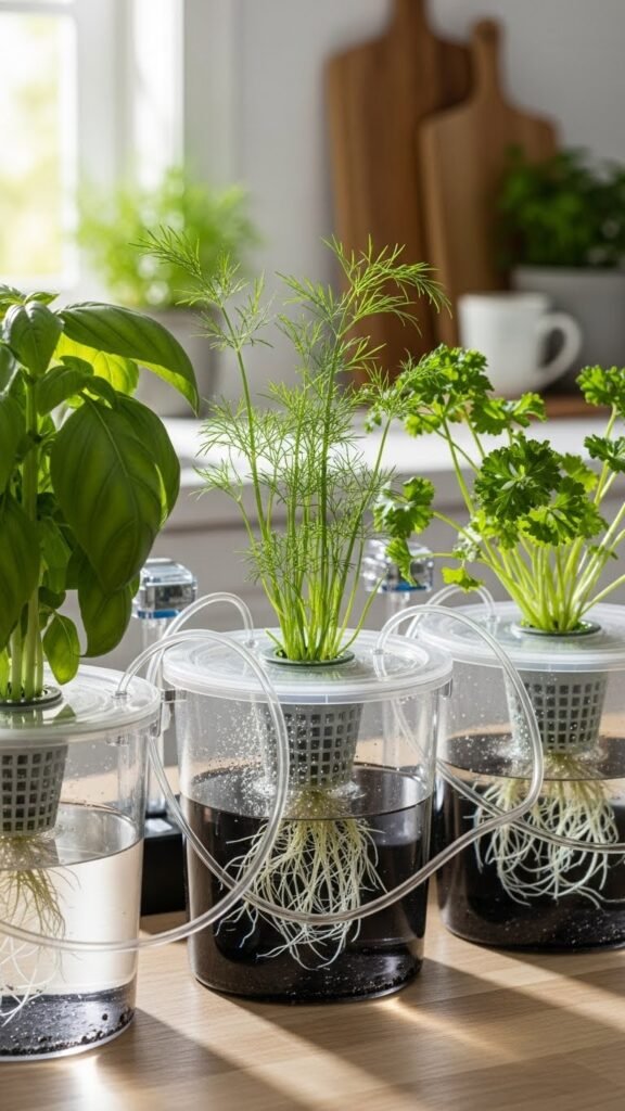 If you cook often but short on space, a compact countertop hydroponic kit lets you grow fresh herbs within arm’s reach of your stove.
