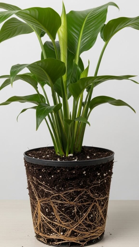 Check your pots regularly for signs the roots are crowding the soil: roots circling the drainage hole, soil that dries out almost immediately after watering, or stunted top growth all mean the plant’s become rootbound and needs more room.