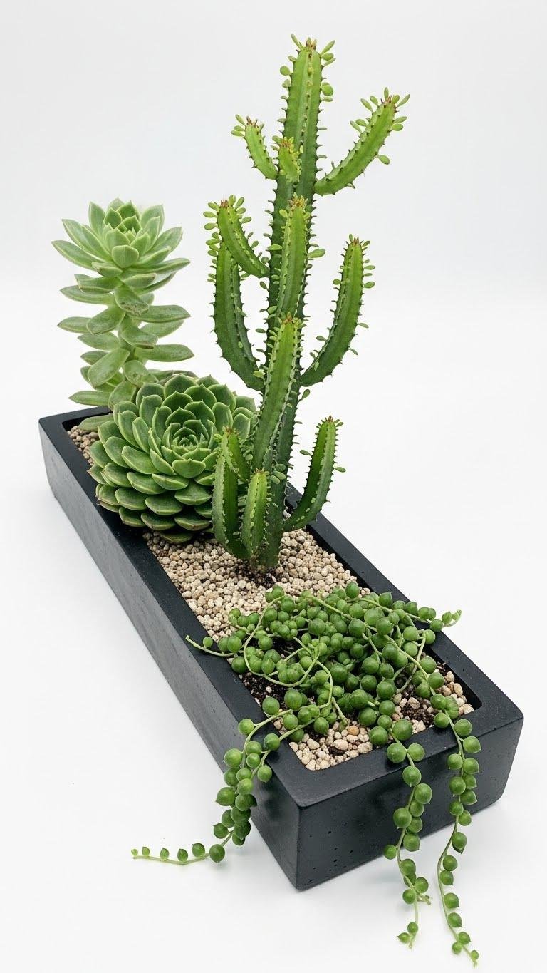 Though you’ll aim for balance, let the trio feel slightly off-kilter: place three distinct succulents in a long tray so their heights, textures, and spacing read as intentional asymmetry.