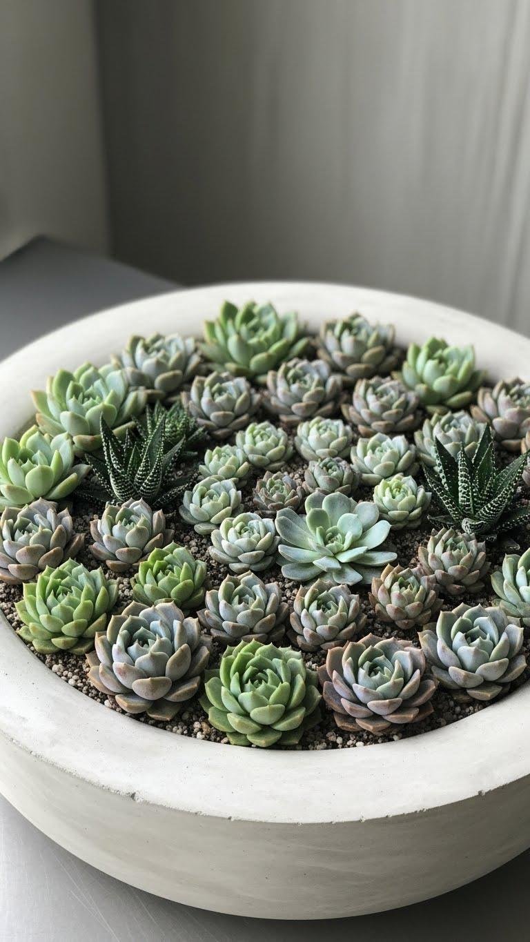 When you arrange tiny succulents in a strict grid, the repeated shapes read like a living graphic — tidy, rhythmic, and unmistakably modern.