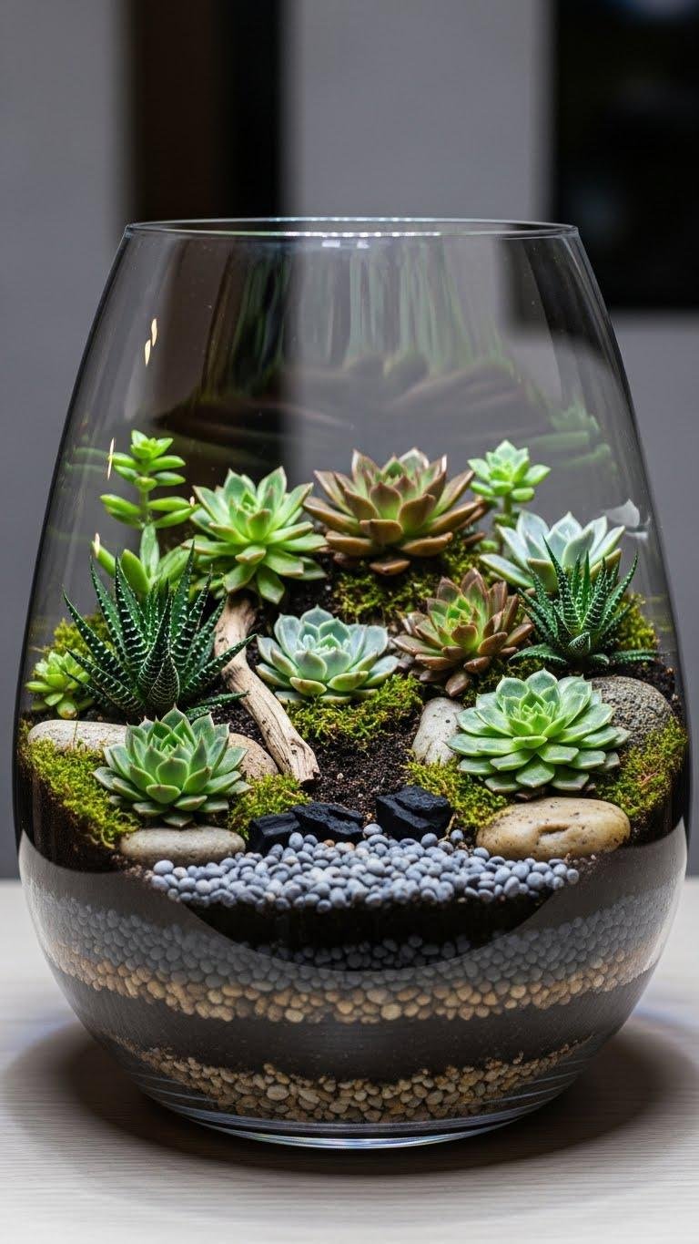 You’ll water sparingly, prune dead leaves, and enjoy a low-maintenance terrarium that feels curated and free.