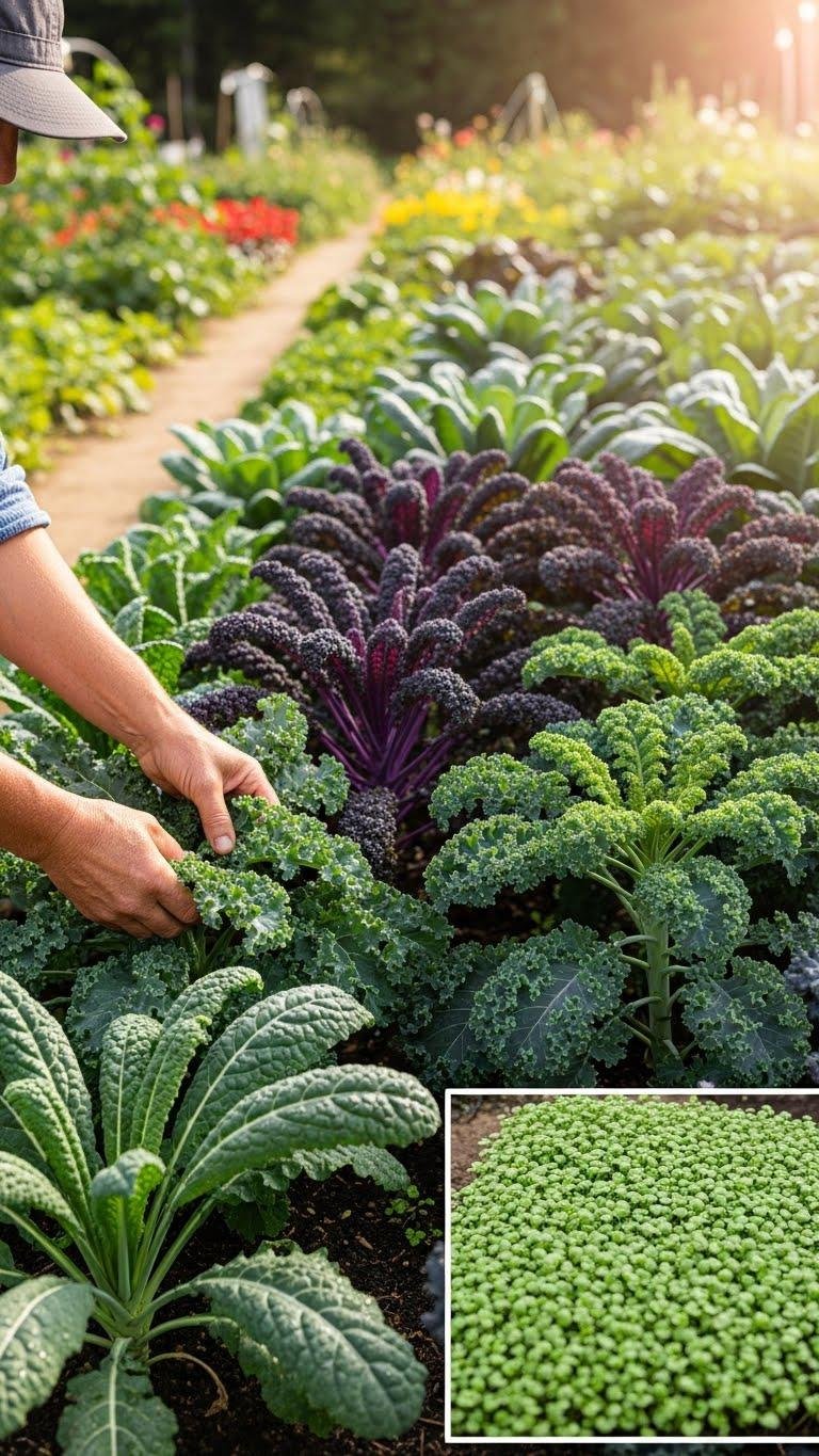 You’ll enjoy freedom to harvest anytime: stagger plantings, use perpetual cutting to keep beds productive, and sow kale microgreens for quick, tender additions. Feed lightly, water consistently, and harvest with confidence for fresh, continuous salads.