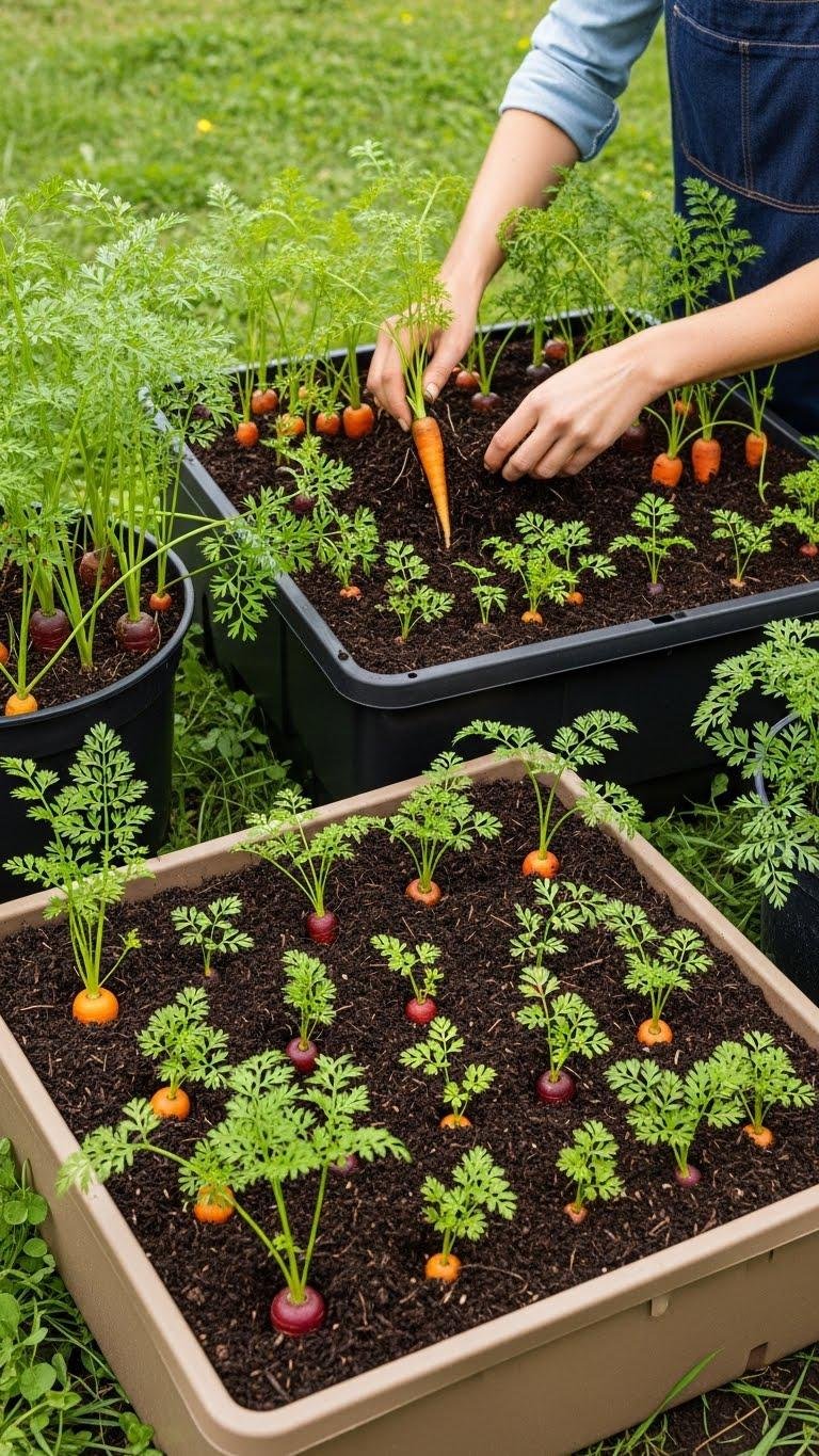 Space roots by squares, thin seedlings to recommended gaps, and harvest progressively. You’ll enjoy constant crisp snacks and the freedom of portable, productive beds.