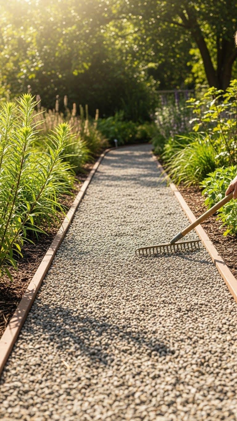 Crushed gravel or granite paths give you an affordable, low-maintenance route through the garden that still feels crisp and intentional. You’ll lay a simple base, install permeable edging to keep lines clean, and rake for a smooth finish.