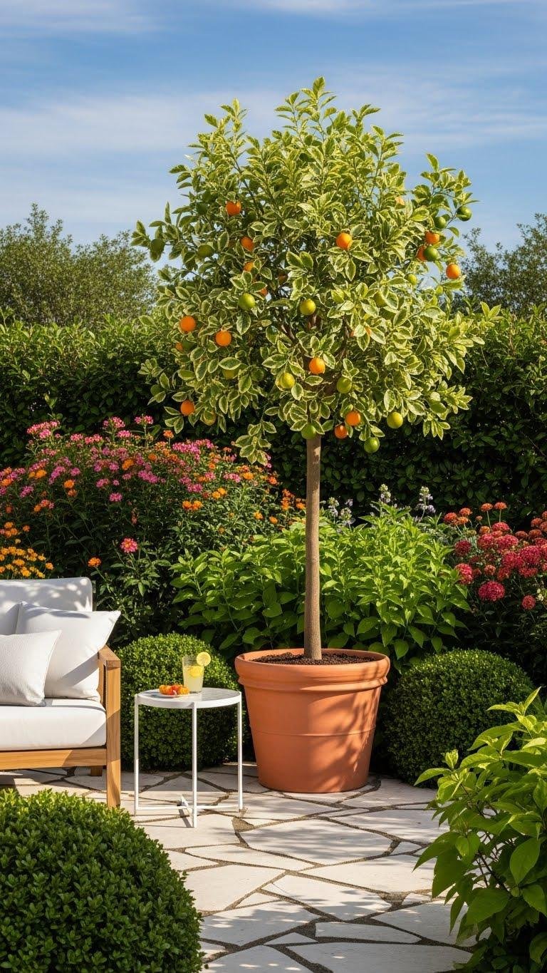 Pick one bold specimen tree or an oversized container to anchor your garden and give the space instant structure and personality. Choose an architectural palm for dramatic height or a variegated citrus for color and fragrance.