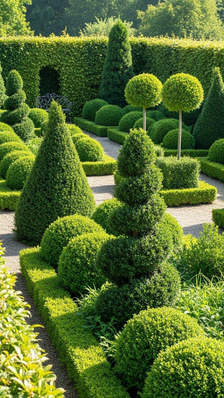 Prune deliberately, use simple geometric forms, and let repetition give rhythm — you’ll gain control, low maintenance, and a liberated, refined outdoor room.