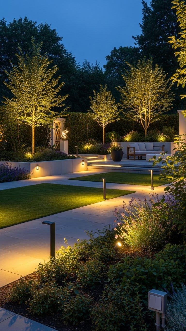 Often a layered outdoor lighting plan transforms a garden at dusk, giving you depth, safety, and mood without overpowering the space. You’ll use fixture layering — low path lights, concealed uplights and focused spot beams — to create mood zoning: soft relaxation areas, brighter task zones, and accent pockets.
