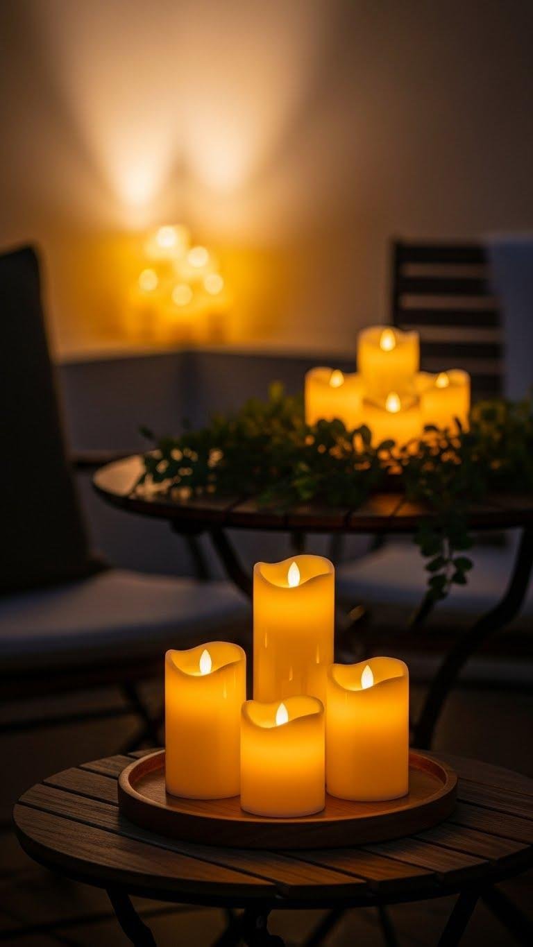 A small cluster of candlelike LED lanterns can turn a plain corner or table into a warm focal point, giving you the flicker of real flame without smoke or risk.