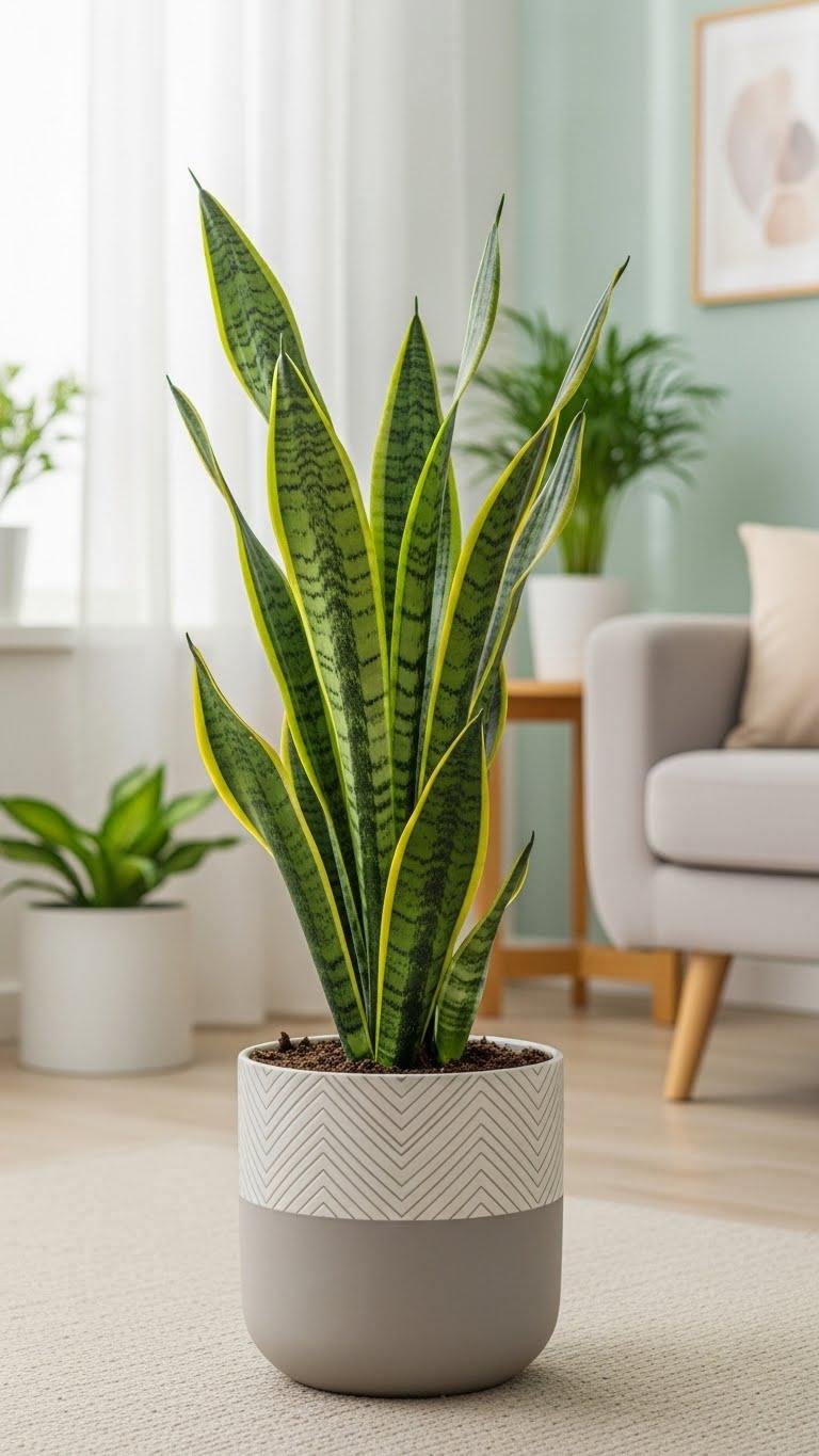 Often overlooked, the snake plant (Sansevieria trifasciata) is one of the easiest houseplants to keep alive: it tolerates low light, irregular watering, and a wide temperature range.