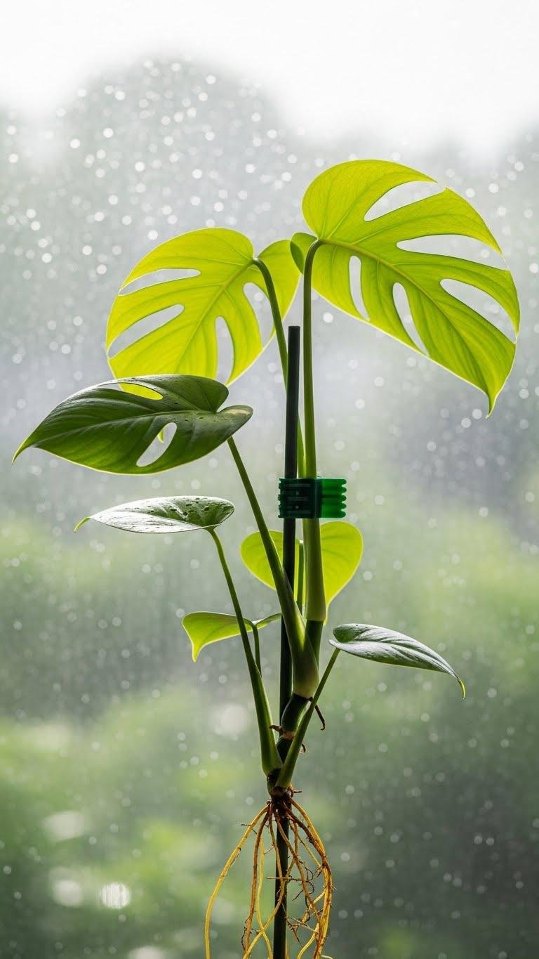 Frequently overlooked in juvenile form, young Monstera deliciosa gives you a manageable, attractive starter plant with smaller leaves, aerial roots, and the promise of dramatic fenestration as it matures.