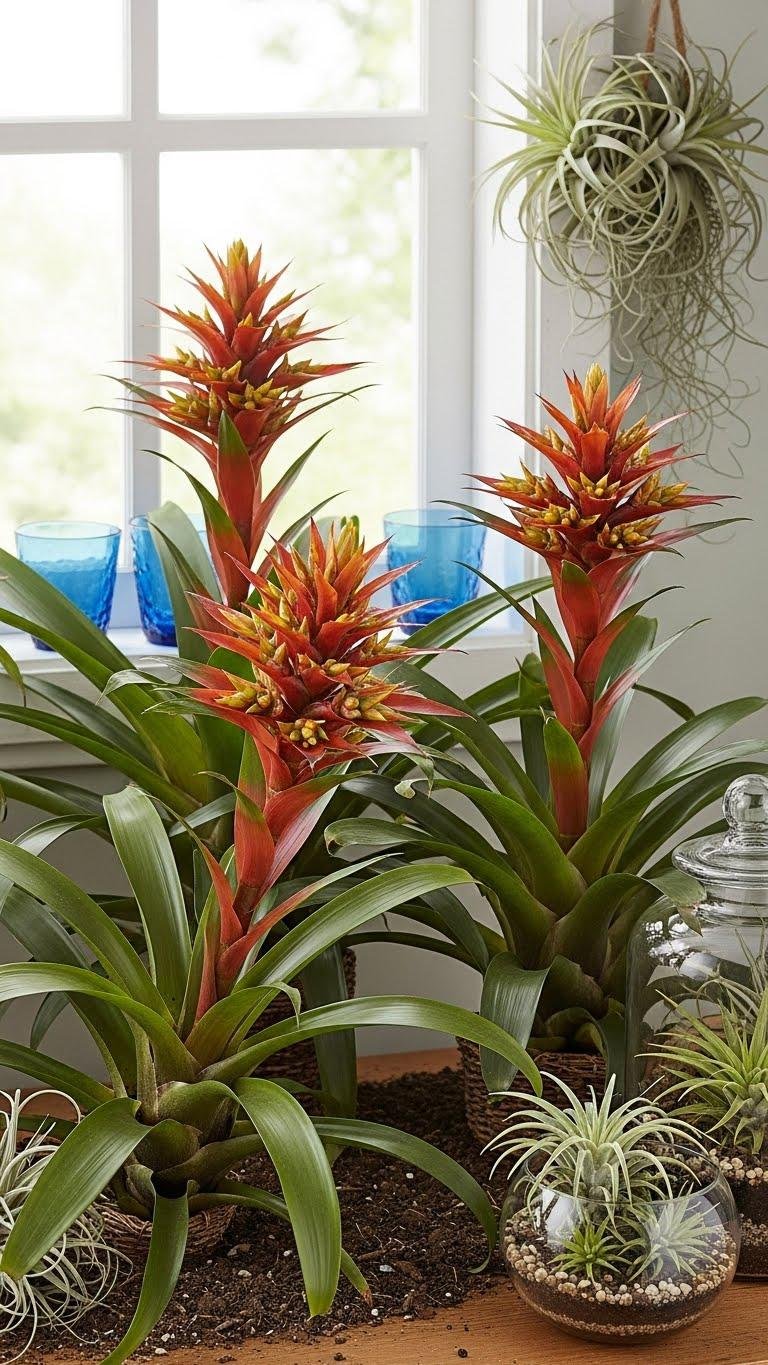 If you enjoy the sculptural look and low fuss of Vriesea, you’ll find Spathiphyllum equally forgiving and even more straightforward to care for. You’ll appreciate reliable low-light growth, infrequent watering, and easy indoor propagation via division. It perks rooms with glossy leaves and white blooms, but note pet toxicity—keep it out of reach. Perfect if you want resilient, undemanding greenery.
