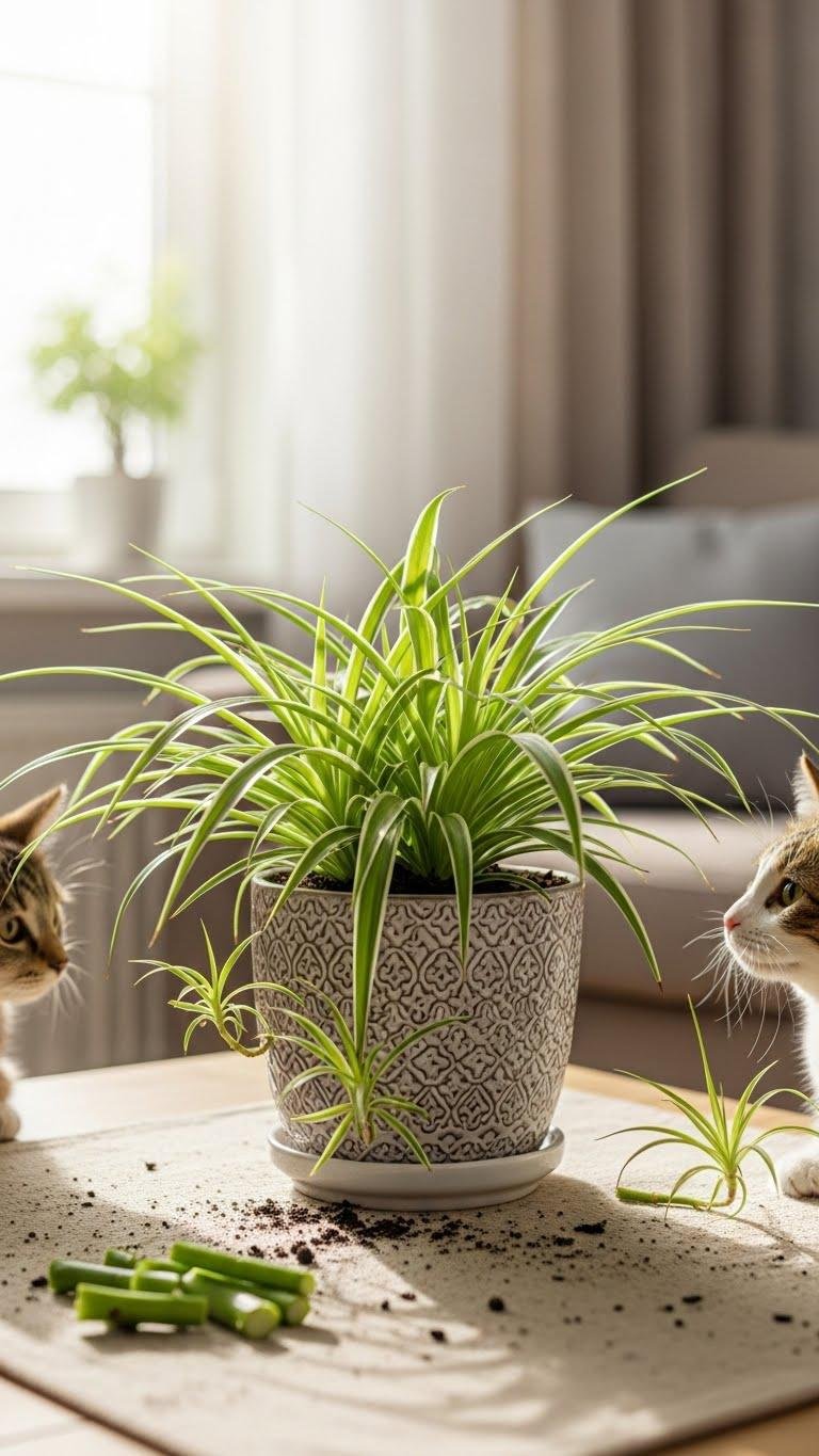 Use simple propagation methods: trim plantlets and root them in water or soil to expand your carefree greenery.