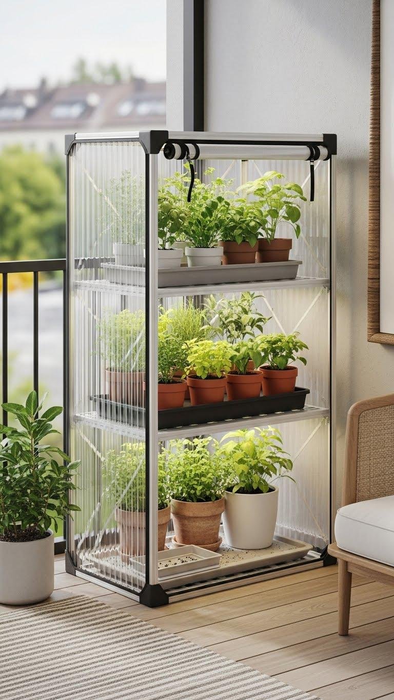 Designed to fit a balcony corner or narrow patio, the compact three-tier greenhouse shelf gives you a sheltered, sun-friendly staging area for seedlings, herbs, and small potted plants.