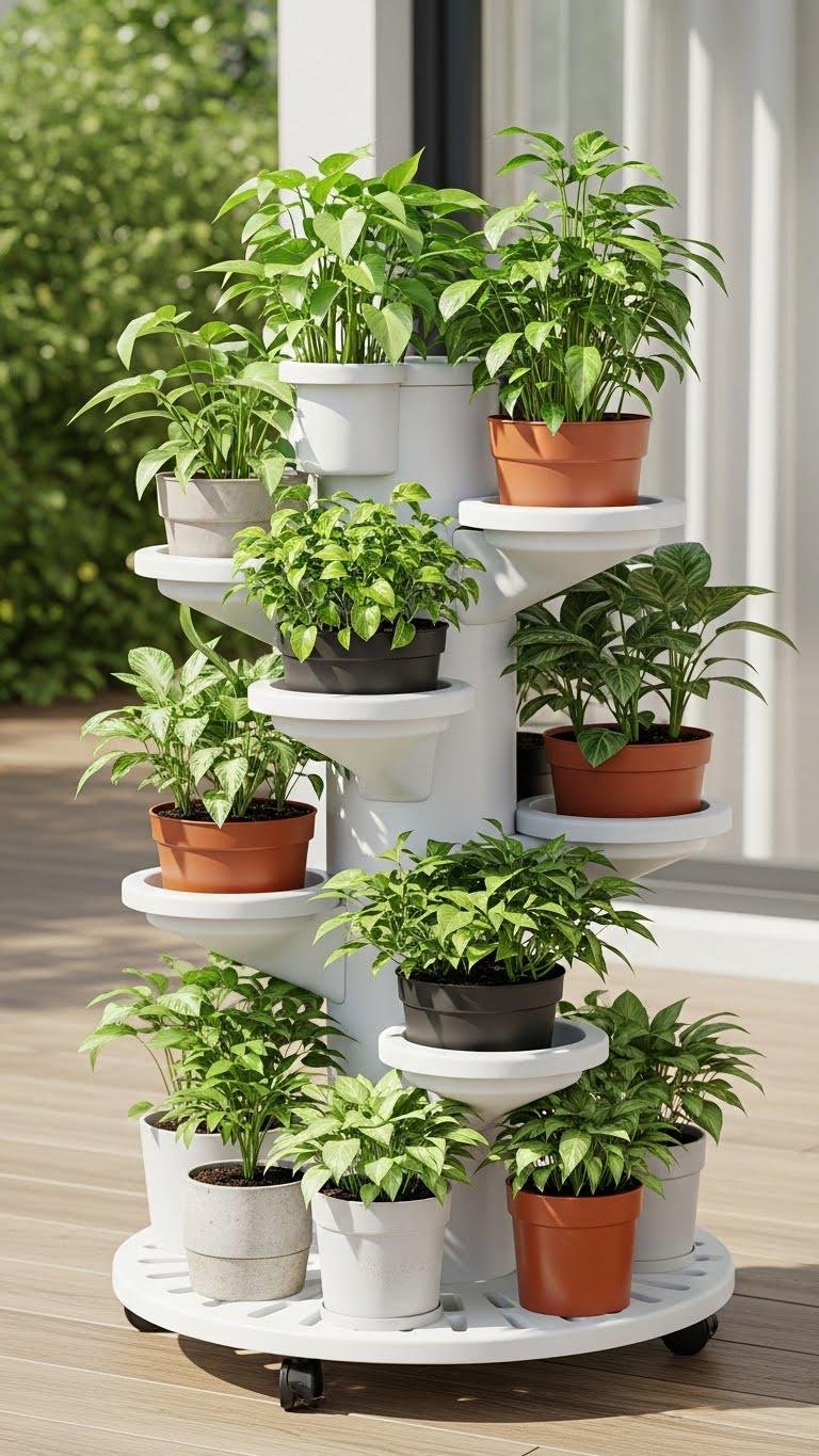 It’s practical, sculptural, and liberating—perfect for maximizing greenery without committing to fixed shelving.
