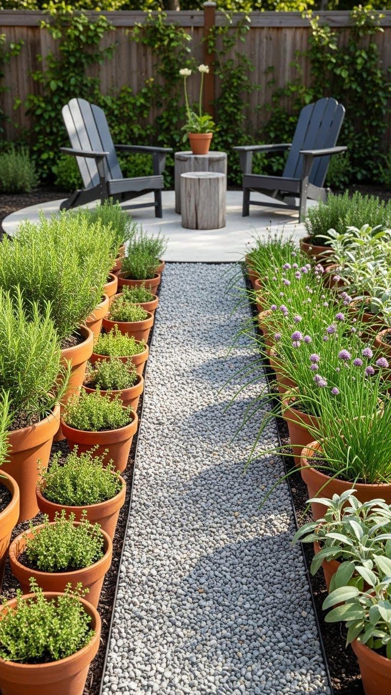 Replace Lawn With Gravel and Potted Culinary Herbs