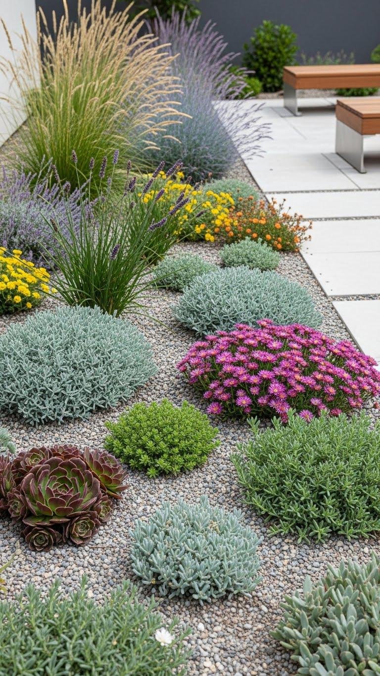 You’ll place drought tolerant grevillea at the rear, stagger catmint borders forward, and enjoy low-maintenance, pollinator‑friendly freedom.