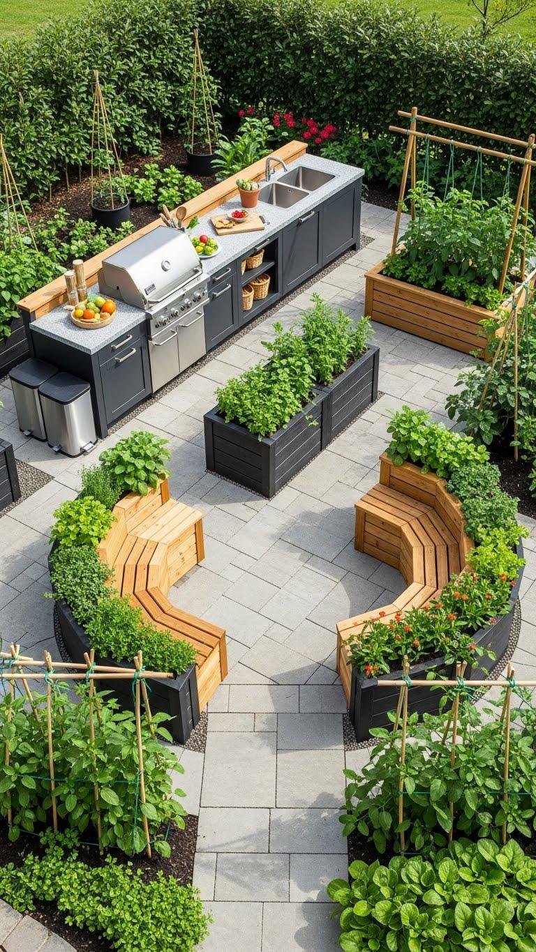 When you carve out an outdoor kitchen garden with seating, think with respect to pantry-to-plate: place culinary herbs, compact vegetables, and heat-tolerant greens within arm’s reach of your prep counter and grill so harvesting is effortless.