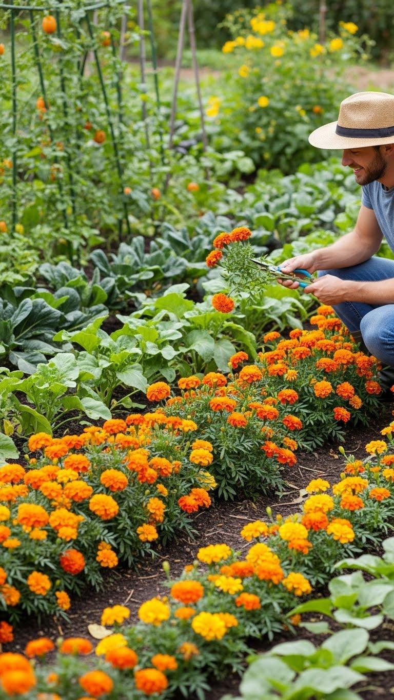 Their edible flowers add color and utility—harvest petals for salads. You’ll cut pesticide needs, protect yields, and keep garden management simple while preserving your freedom to experiment.