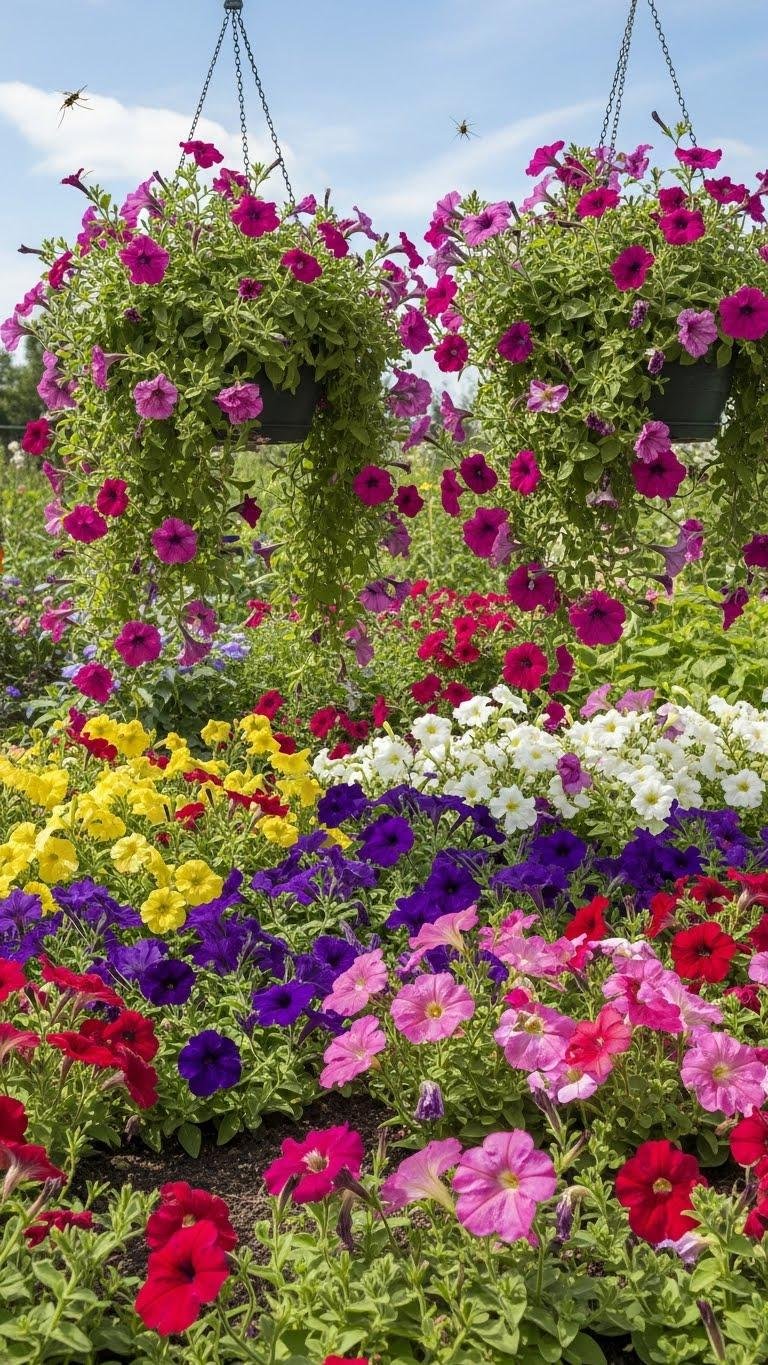 You’ll choose container petunias for balconies or mix trailing varieties along borders. Water regularly, deadhead spent blooms, and space plants for airflow so you maintain vigor, color, and practical pest suppression all season.
