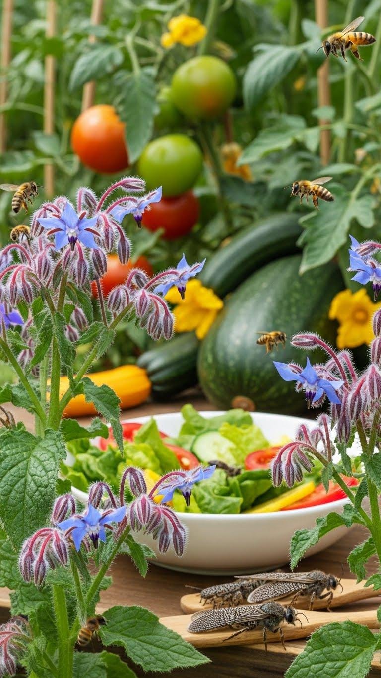 Think of borage as a magnet for pollinators and a useful companion in vegetable beds: its star-shaped blue flowers attract bees and predatory insects, while the hairy leaves can deter tomato hornworms and squash vine borers.