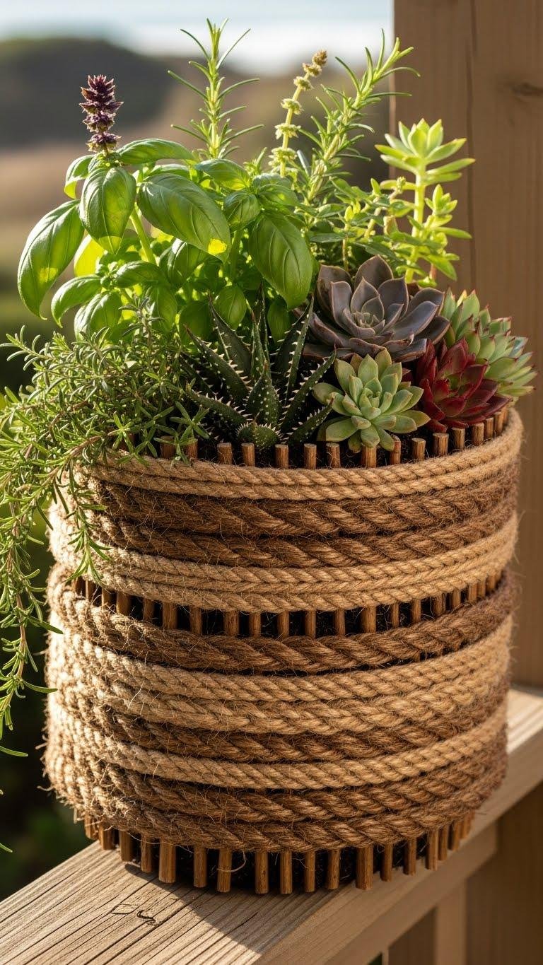Stick-Wrapped Jute Rope Planters