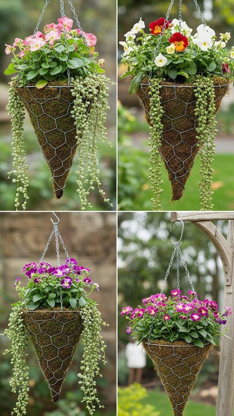 Moss-Lined Chicken Wire Cones