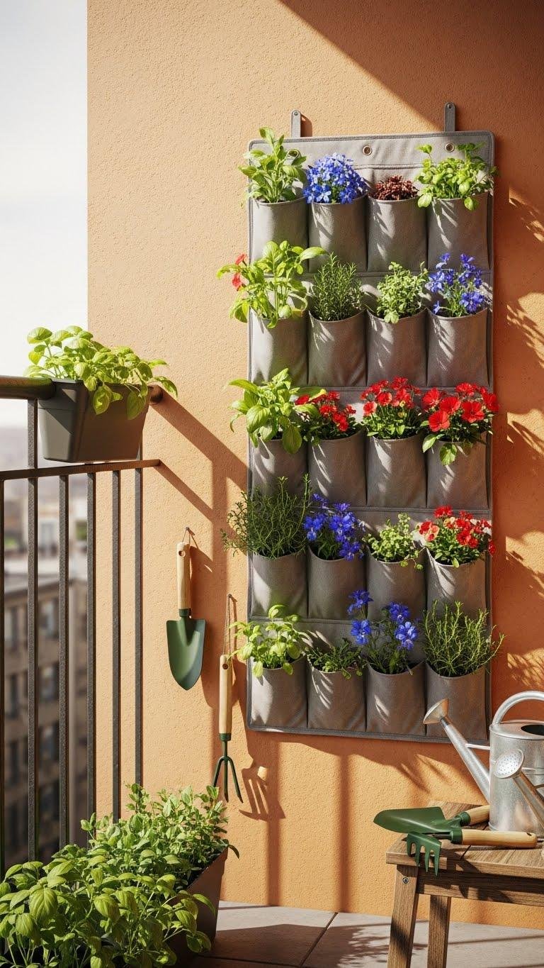 Tucked against a balcony railing or hung on a sunny wall, a fabric shoe organizer makes an instant vertical planter you can set up in minutes. You’ll use hanging pockets as mini beds: line them for drainage, add potting mix and seedlings, and hang at reachable height.