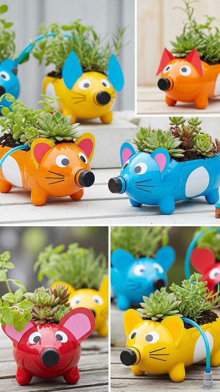 Grab a couple of empty two-liter bottles and you’ve got a lightweight, weatherproof base for playful animal planters that are cheap, kid-friendly, and surprisingly durable.
