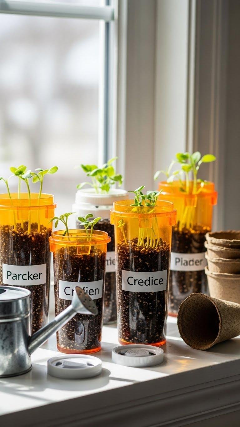 Repurposing prescription bottles into seed starters gives you a compact, organized way to begin seedlings without buying trays. You’ll clean pill bottle containers, punch drainage holes, and label crops for easy rotation.