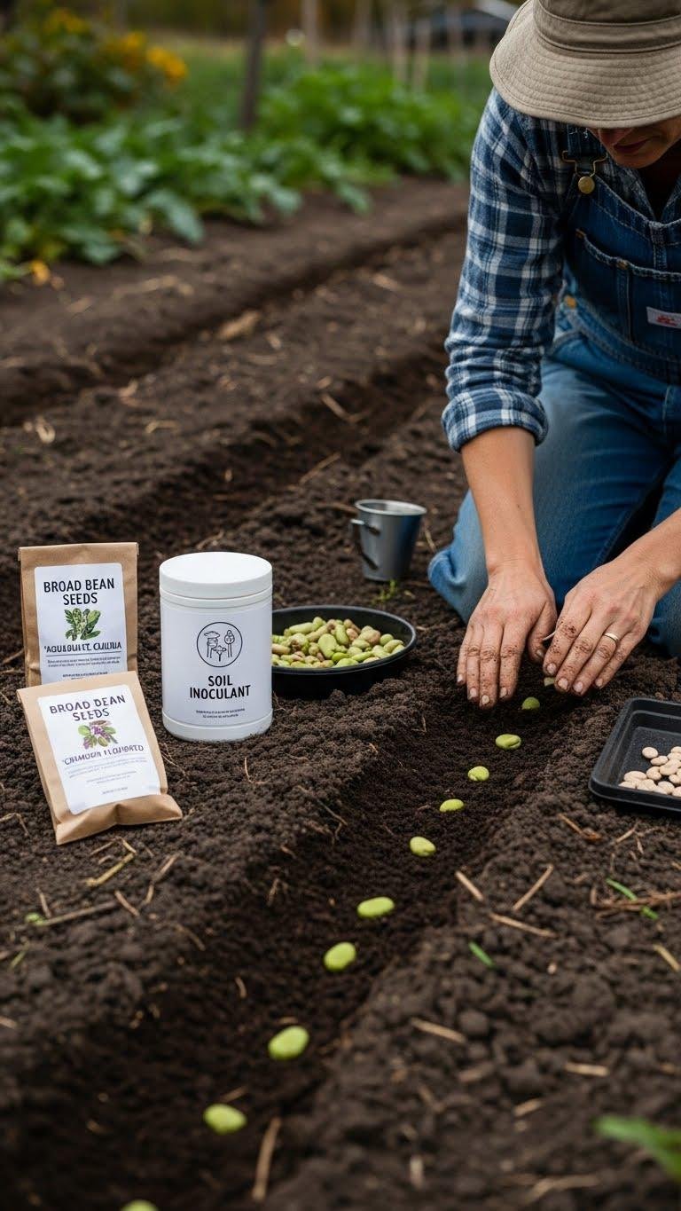 Timing broad bean sowing so they establish before hard frosts is key — plant them in autumn or very late summer in mild areas, or as soon as soil can be worked in early autumn further north.
