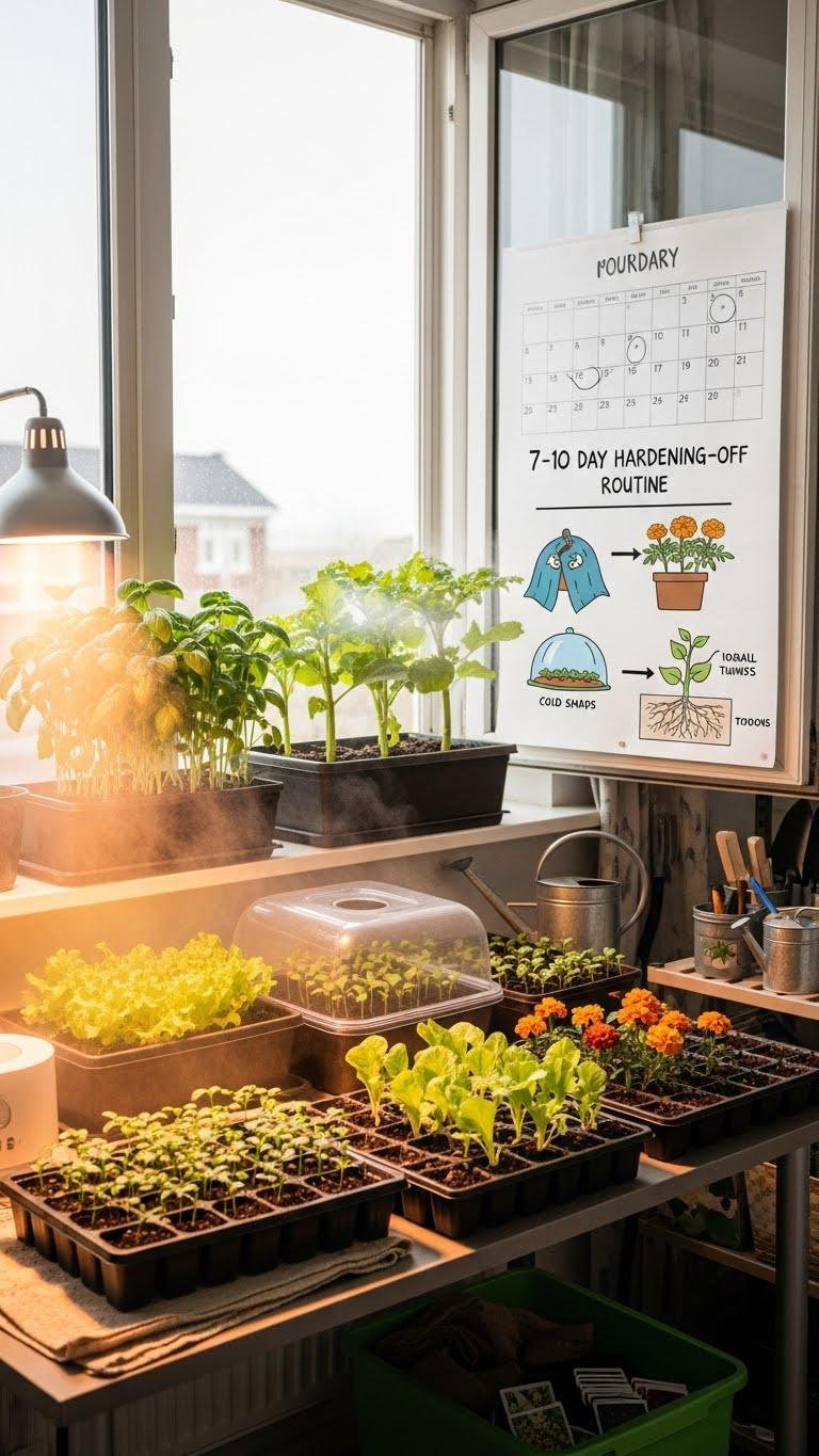 You’ll monitor indoor germination, keep trays warm and moist, then expose seedlings to sun, wind, and cooler nights gradually.