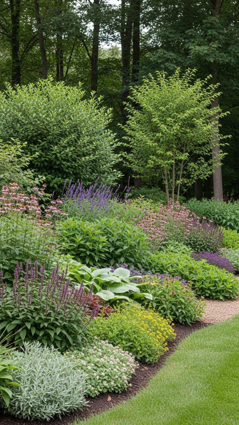 Woodland Edge Transition With Shrubs and Perennials