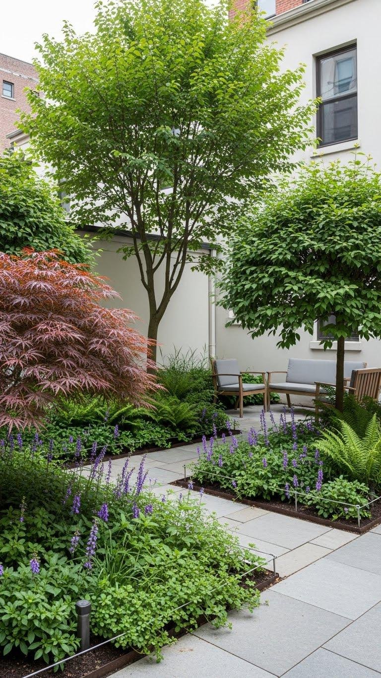 Small Urban Shade Courtyard With Compact Trees