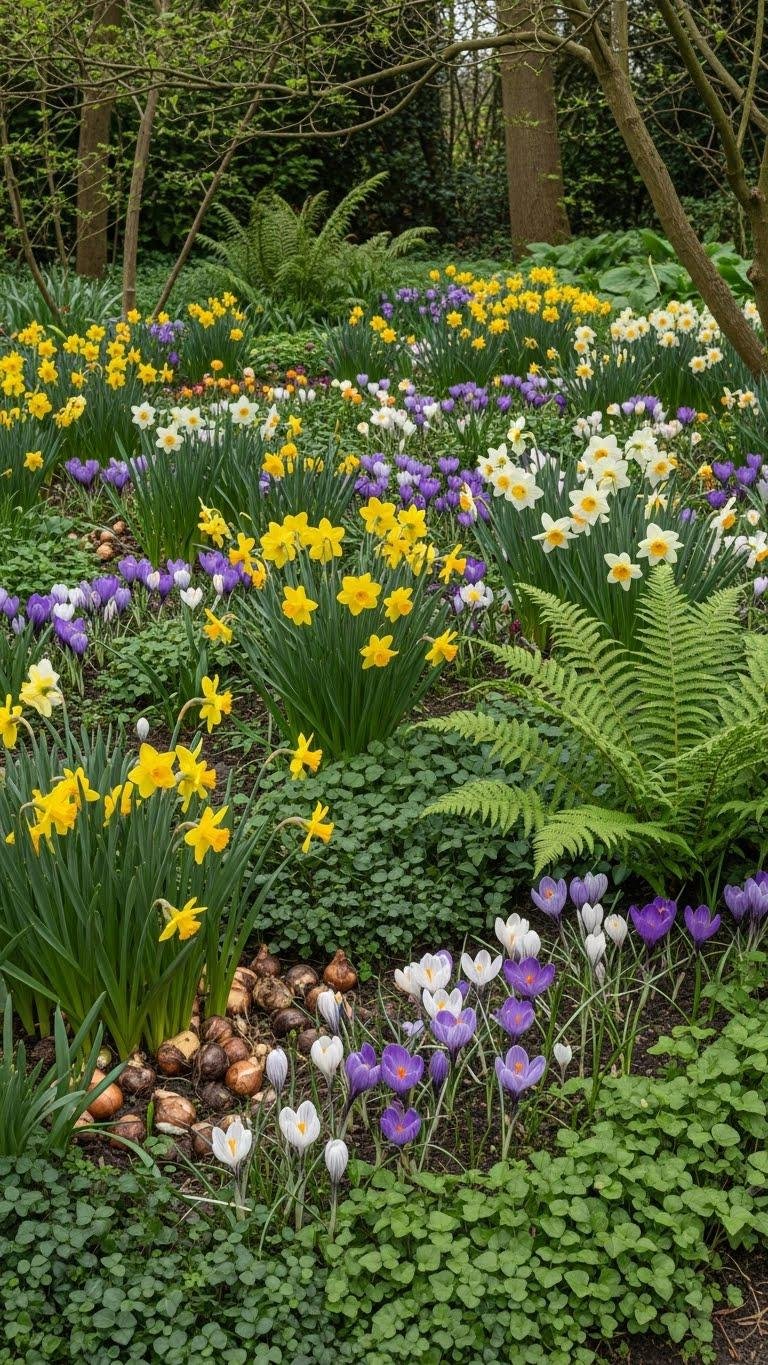 When you plant bulbs with a naturalized approach, they’ll come back year after year to give your shade garden early-season bursts without constant replanting. Choose naturalized bulbs like daffodils and crocus, scatter in woodland drifts, and plan spring succession with staggered bloom times.