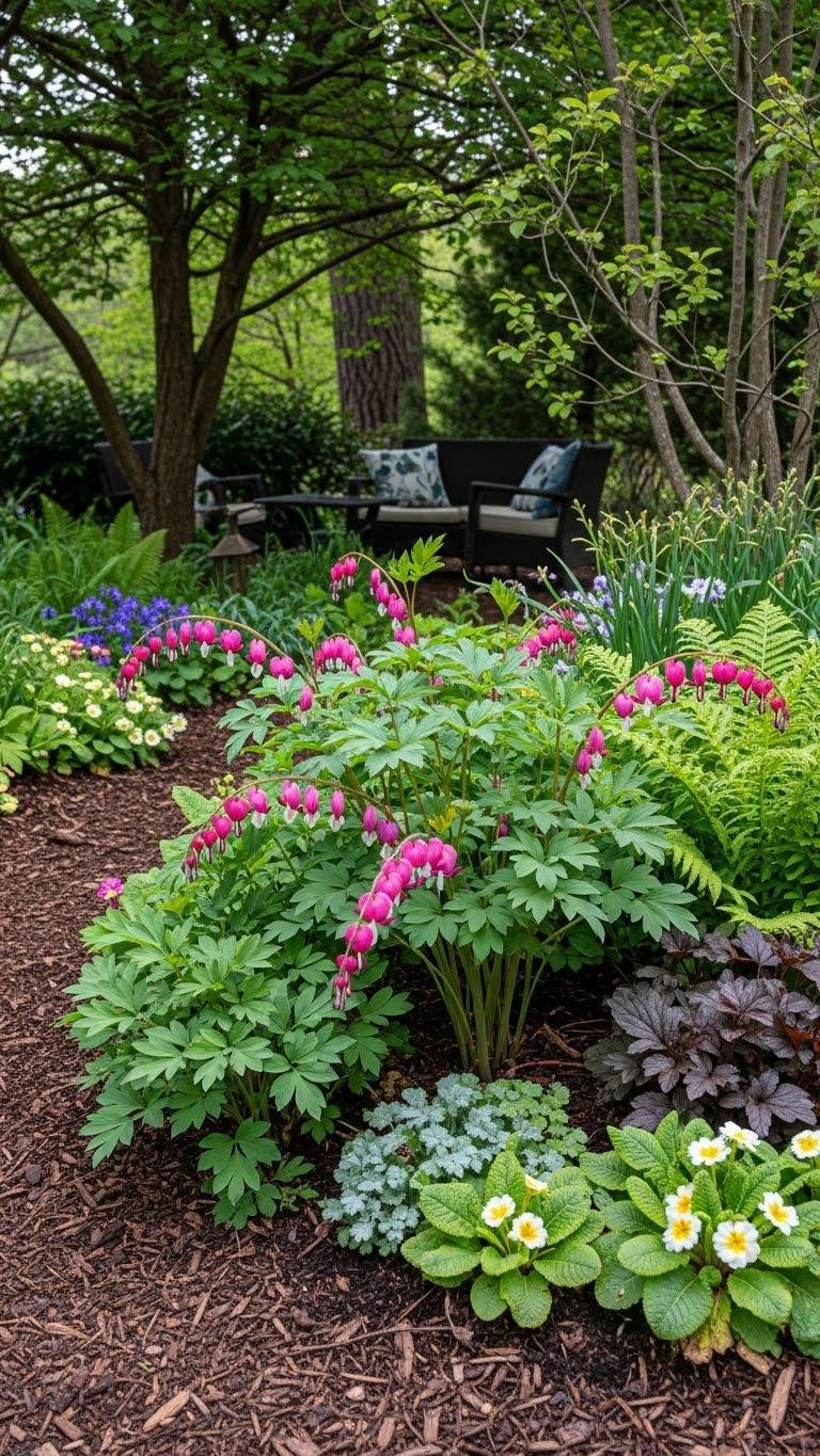 Cottage-Style Shady Corner With Bleeding Hearts