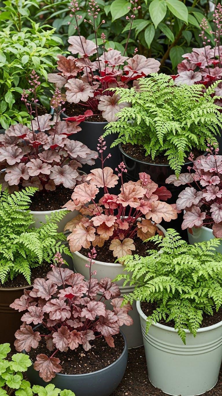 Practice heuchera propagation for cost-effective repeats, and use fern companioning to balance form and humidity needs, giving you a liberated, low-maintenance vignette.