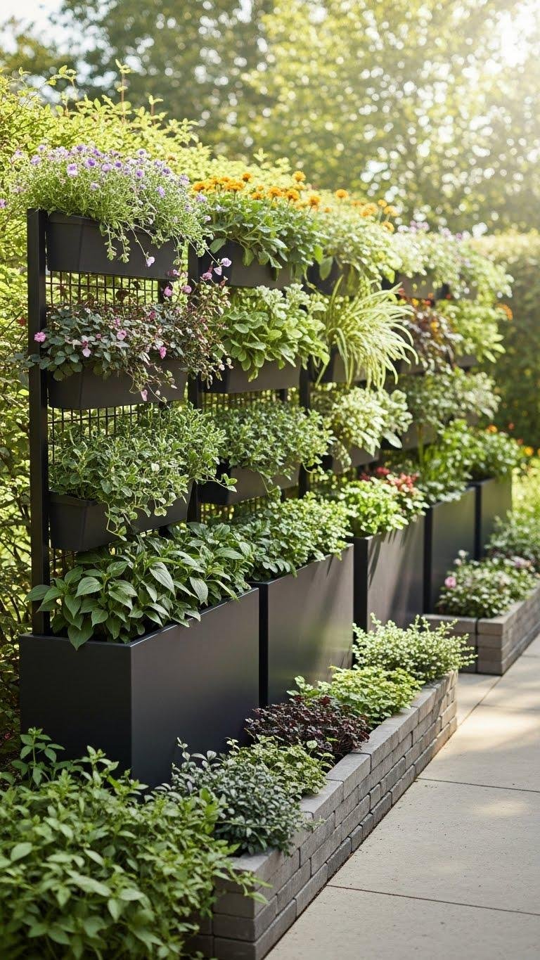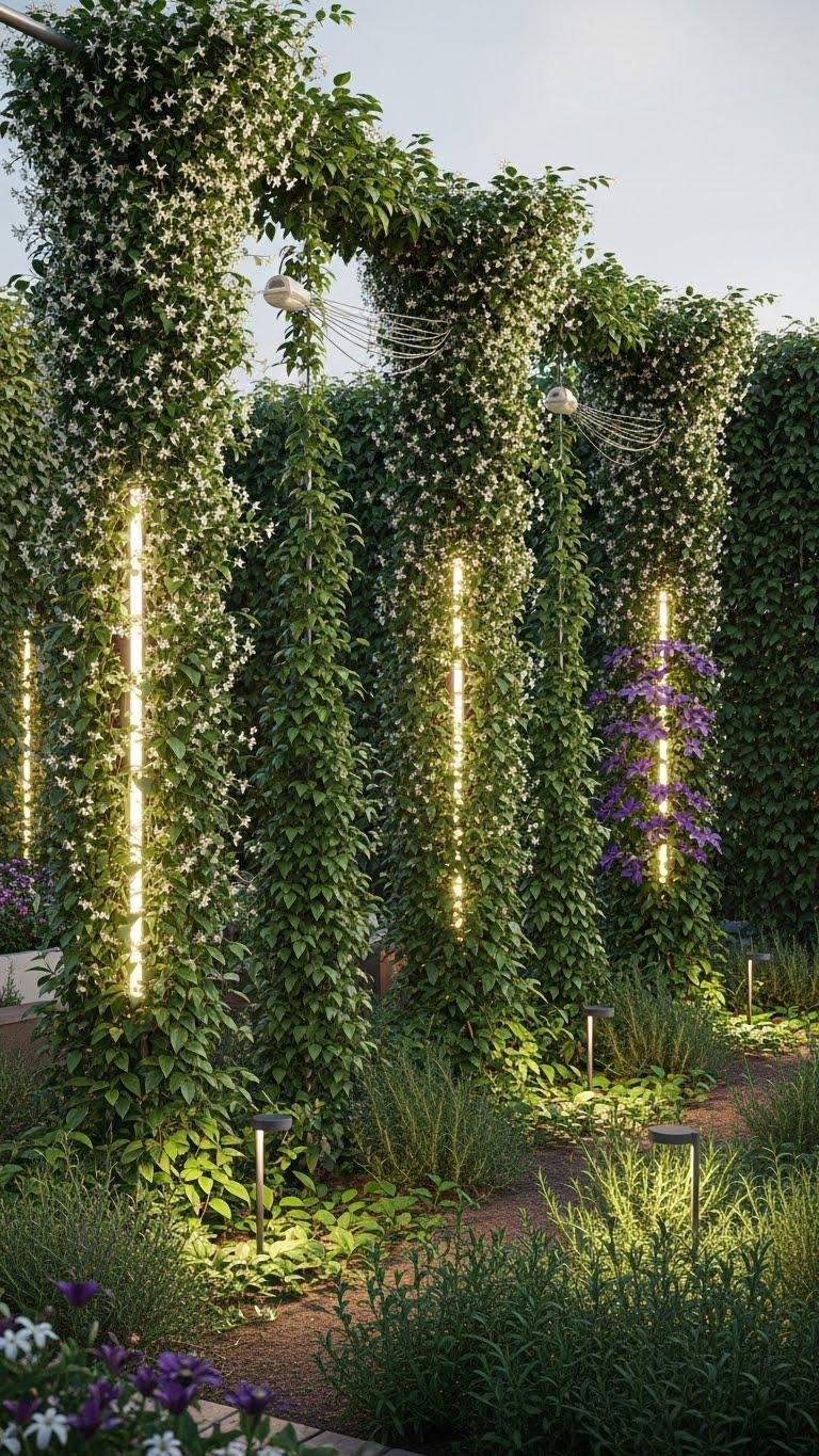 You’ll train climbers like jasmine or clematis to create green walls, freeing ground beds for roaming herbs.
