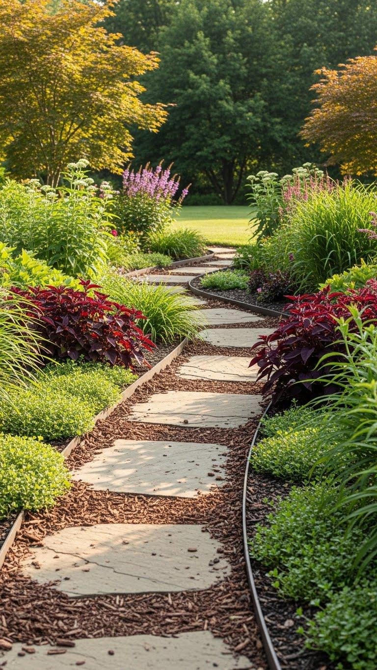 Keep pathways simple and visible so you can move through the garden without brushing past foliage or trampling beds. Define routes with low, planted edges and hard surfaces so you’ll enjoy clear sightlines and unobstructed access.