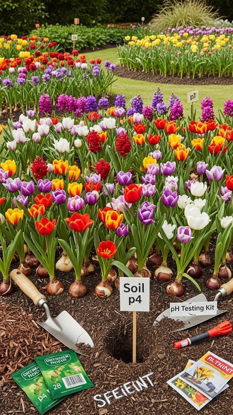 Plant bulbs in clusters of 12 or 24 to create bold, cohesive swaths of color that read clearly from a distance and simplify maintenance up close. You’ll plan using bulb spacing guides, mark holes efficiently, and perform seasonal soil testing to adjust pH and nutrients.