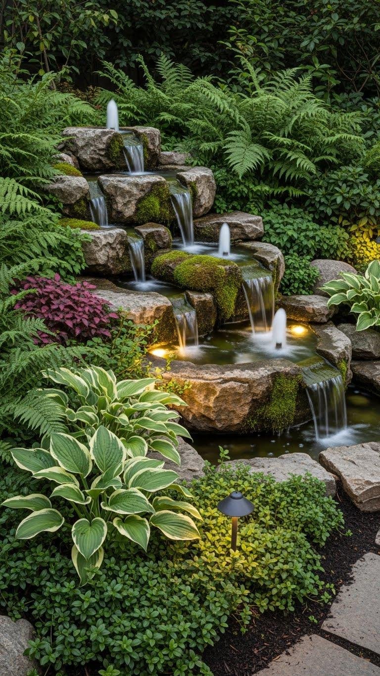 When you place a multi-tiered stone fountain amid beds and specimen pots, its cascading tiers add both height and a gentle soundtrack that benefits nearby moisture-loving plants like ferns, hostas, and moisture-tolerant groundcovers.
