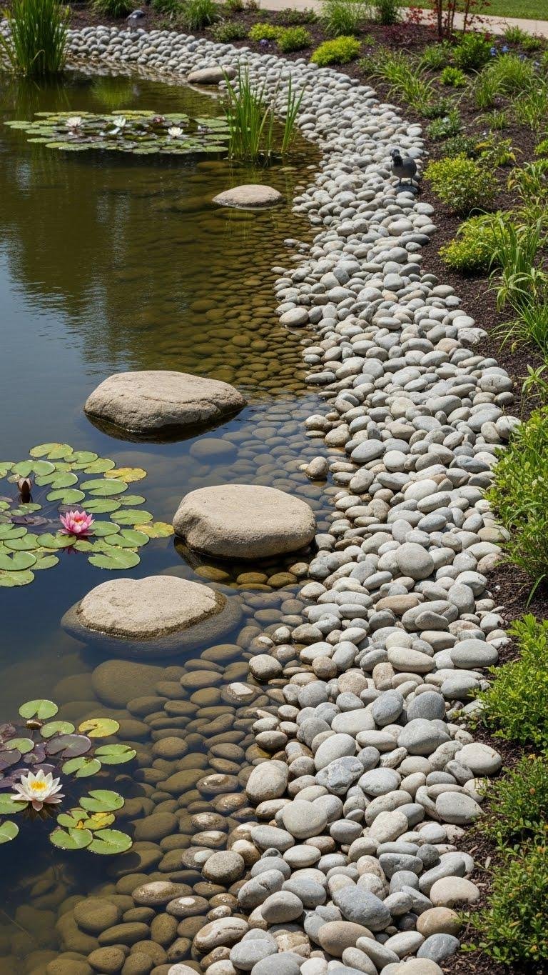 Smooth River Rock-Lined Pond Edges