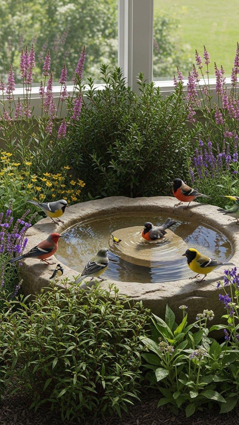 Stone Bird Bath Sanctuary to Attract Birds