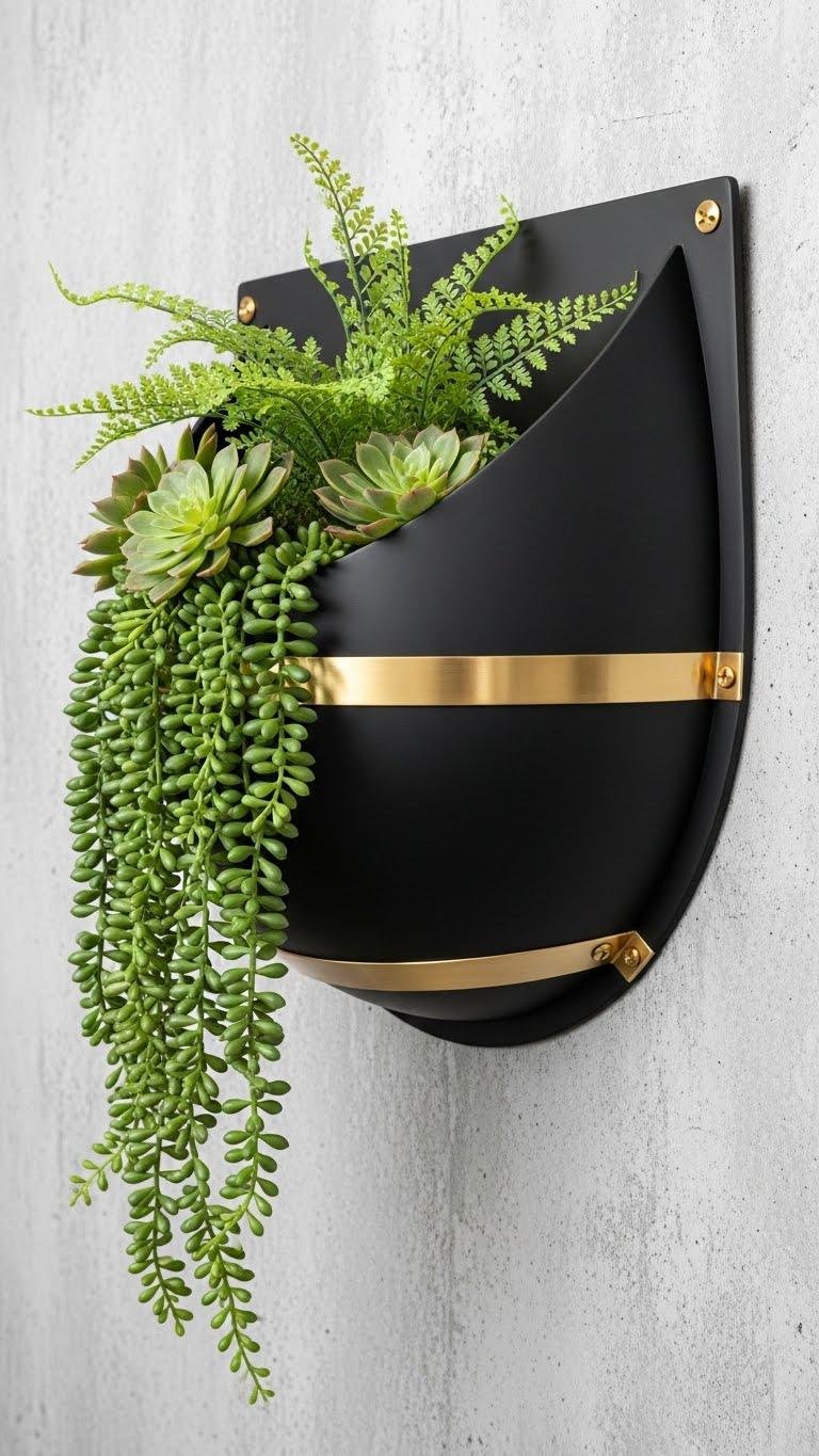 When you mount a black-and-gold half‑moon planter wall, it becomes an instant focal point that pairs dramatic contrast with sculptural form.
